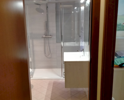 La poco utilizzata vasca ha lasciato spazio ad una doccia comoda e moderna.